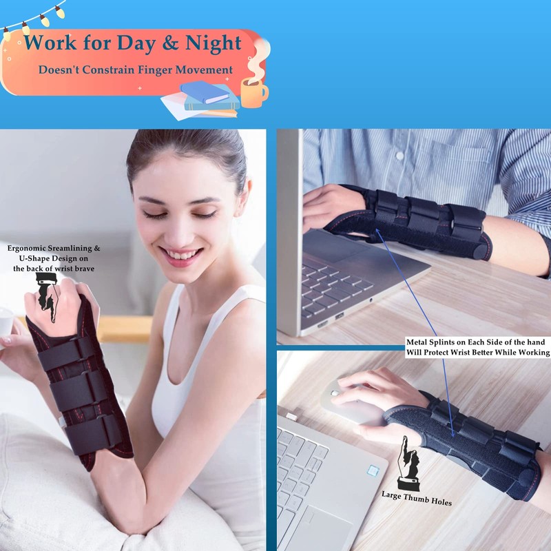- 【2 Thumb Holes】 There are 2 large thumb holes, you can wear wrist brace right hand or left hand based on your need. More importantly, you can wear it no matter day or night. It will help your hand recover more quickly.