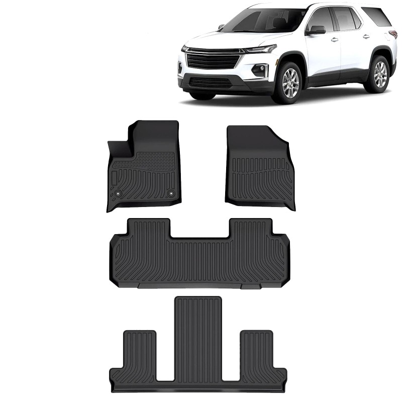 CARPARTS-0978 Floor Mats For 2018-2024 Chevy Traverse 7-Seat All Weather TPE Liner Anti-slip