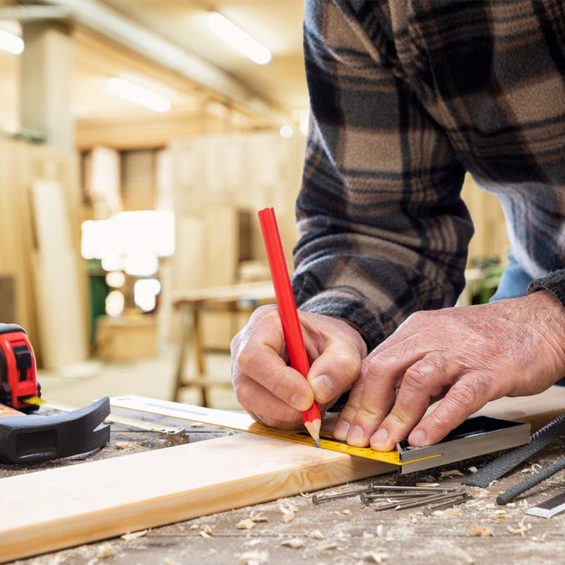 Our carpentry pencils are made of wood and lead, good quality and durable to use. The lead is black and hard, it writes clearly and does not need to resharpen very often, and it is not easy to break when you use it or make it sharp. The high-quality wood is also very easy to sharpen, and the bright red color will remind you when to use it.