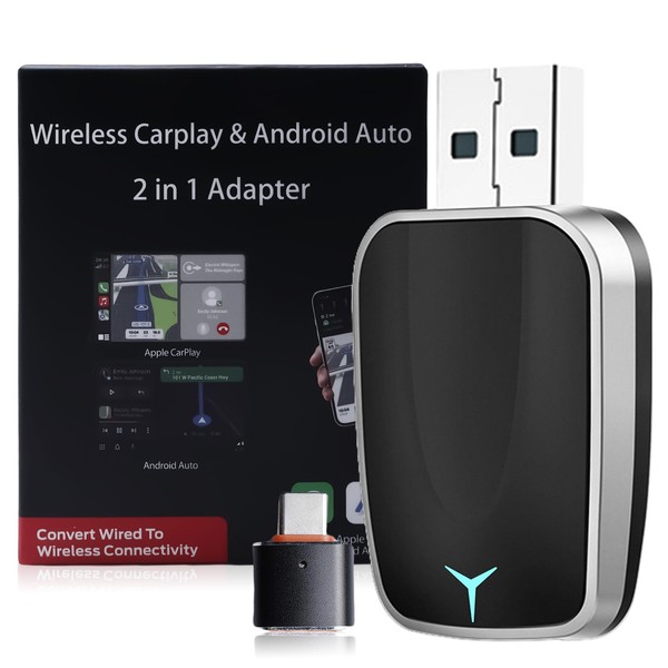 CarPlay Wireless Adapter, 2 in 1 Wireless CarPlay Adapter kabelgebunden zu kabellos, Plug und Play, USB-A/C Mini und Stable USB Android Auto Adapter für iOS 12+ und Autos mit Wired CarPlay