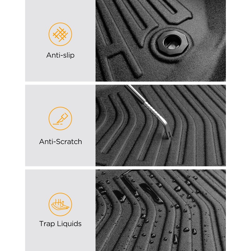 - All-Weather Protection: Designed to handle rain, snow, mud, sand, and more, these liners provide complete floor coverage and a secure, anti-slip grip to keep them firmly in place—comprehensive protection for your Highlander interior in any situation.
