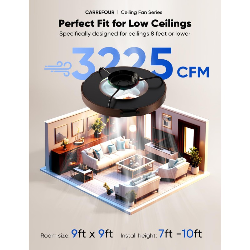 - Compact Size for Bedrooms, Apartments, and Low Ceilings: At just 20 inches, this compact ceiling fan is perfect for smaller spaces where full-size fans are impractical. The slim flush mount profile is especially ideal for rooms with ceilings 8 feet or lower. It provides full-room airflow without overwhelming the space visually—great for bedrooms, guest rooms, and kids' rooms.