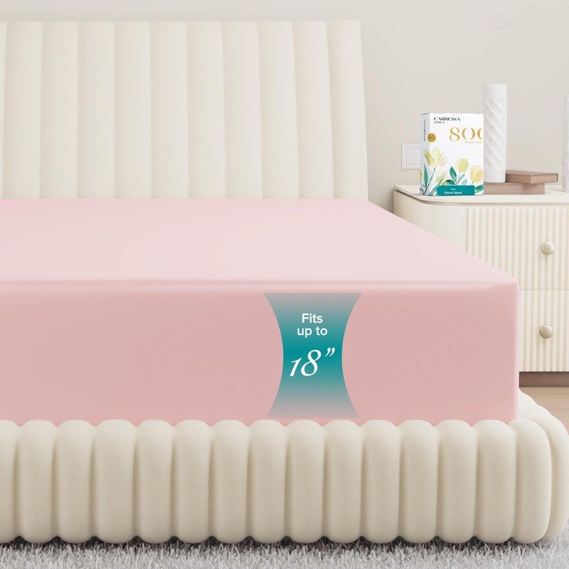 Carressa Linen 100% Egyptian Cotton Full Size Fitted Sheet Only - 800 Thread Count 16" Deep Pocket Fitted Sheet, Durable Sateen, All-Around Elastic, Head/Foot Side Indicators, Blush Fitted Sheet