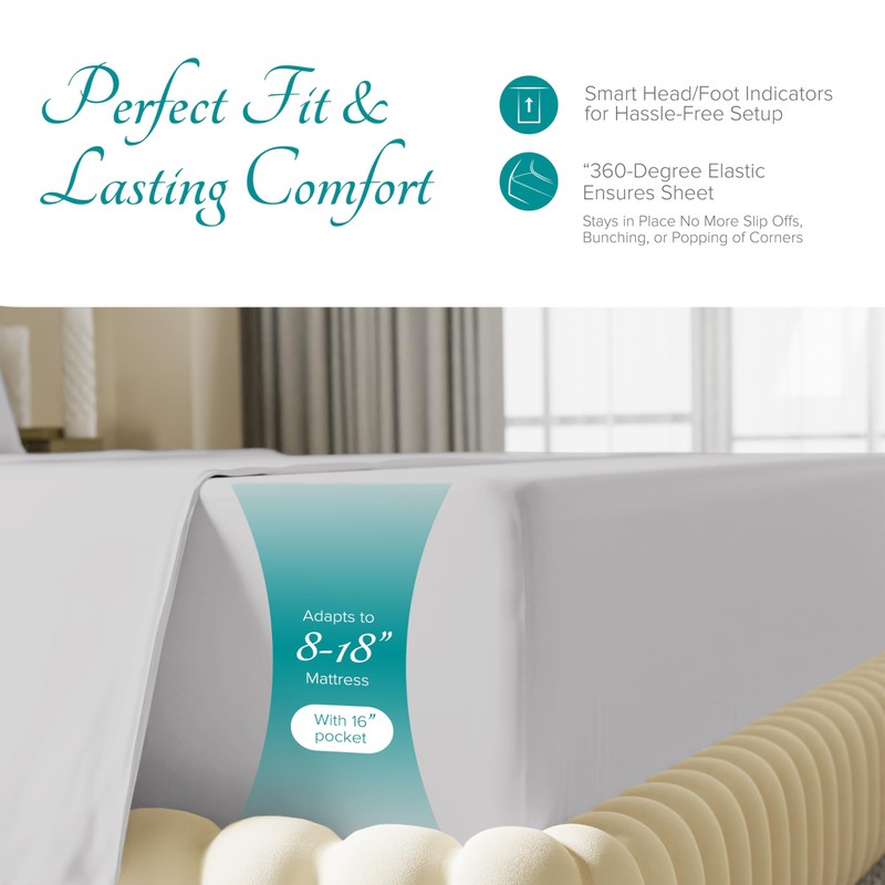 - WHAT COMES IN THE SET?: Our cotton sheets for split king size bed has 5 pieces: 1 Top Flat Sheet (108” W x 106” L), 2 Fitted Bottom Sheet (39” W x 80” L + 16”), and 2 King Size Pillowcases (21” W x 41” L). The fitted sheet has deep pockets to fit adjustable mattresses from 8 inches to 16 inches deep. Clever HEAD/FOOT Tags help you to make the bed easily. Pair this Egyptian cotton quality sheets split king size with a matching comforter and duvet cover to elevate the home/room decor