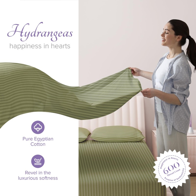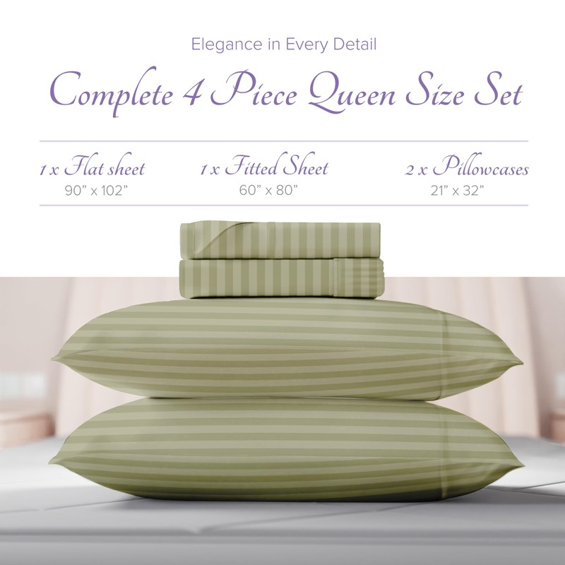 Carressa Linen Luxury Egyptian Cotton Queen Stripe Sheet Set - 600 Thread Count Extra Long Staple 4 PC Set, Herb Garden Queen Damask Sheets, Soft, Cooling Sateen Weave Sheets Upto 18 in Deep Pocket