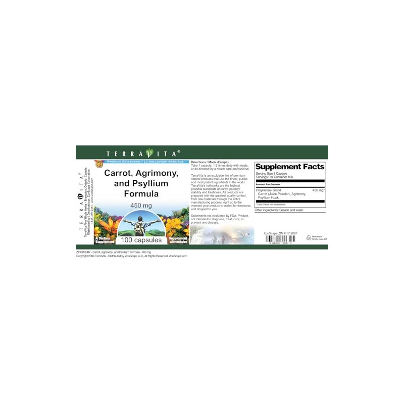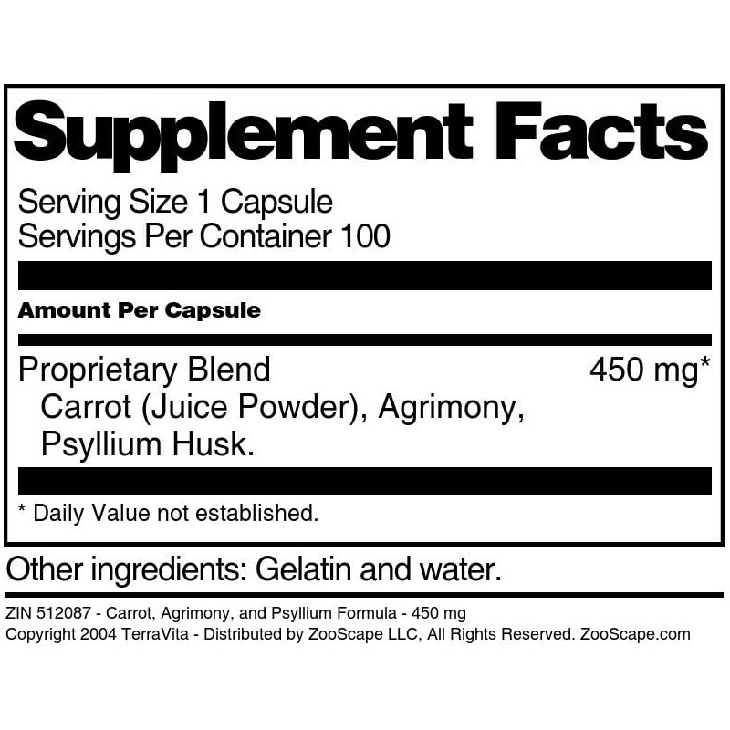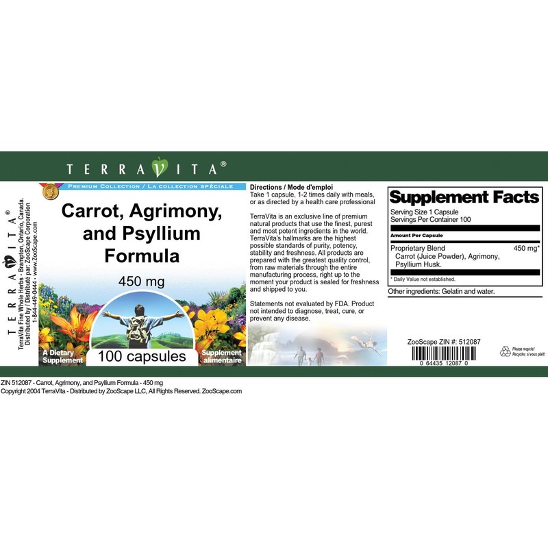 - Carrot, Agrimony, and Psyllium Formula - 450 mg (100 capsules, ZIN: 512087)