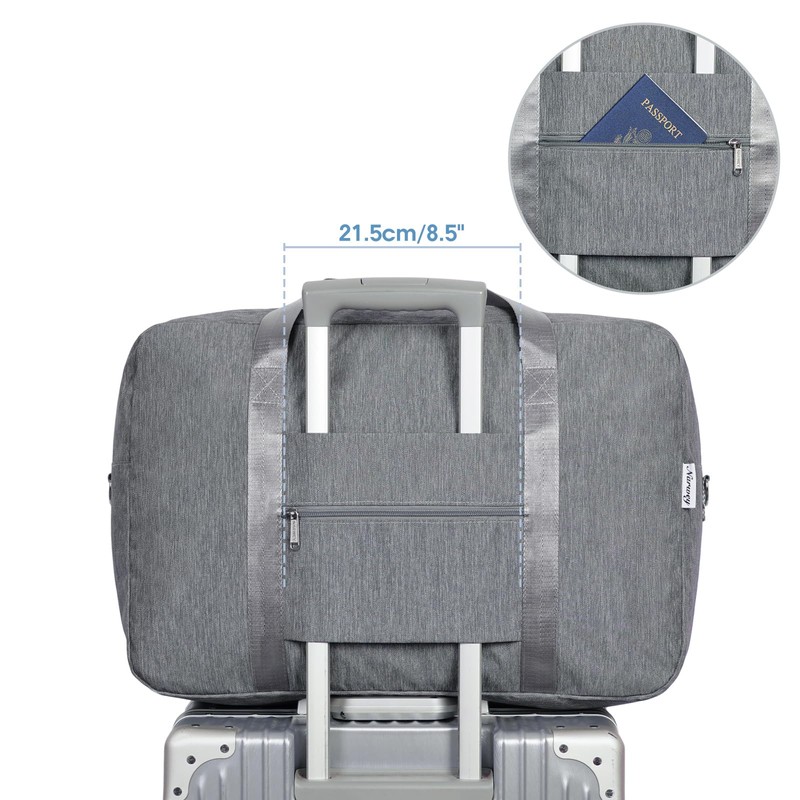 - Easy Carrying - Its exterior pocket offers quick access to items like tickets, passport and more. The pouch as a strap allows the duffel to fit nicely over the handle of common suitcase 18 20 24 26 28 32 inch