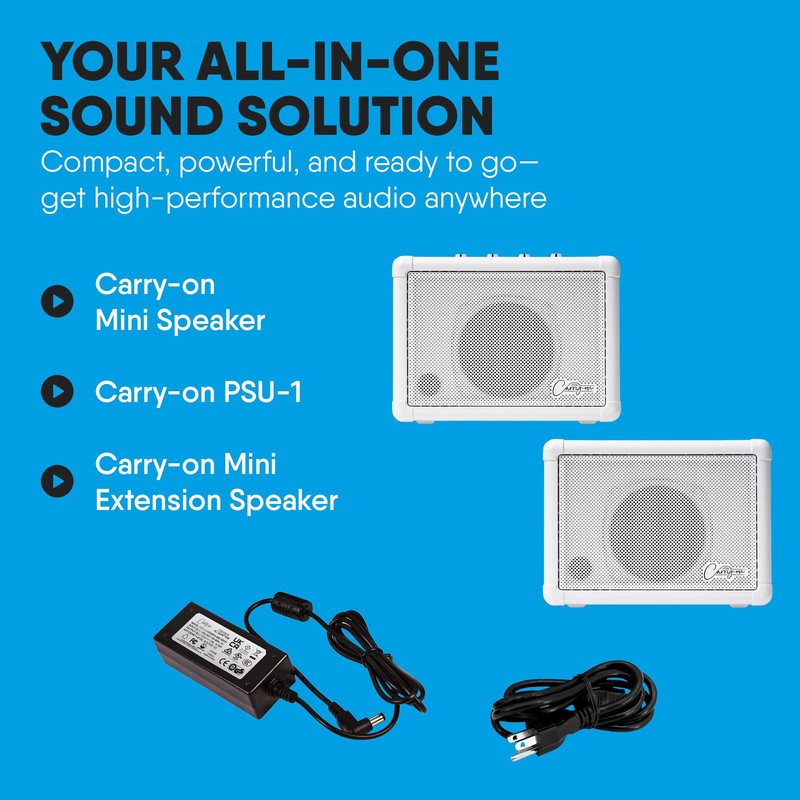 Carry-on Mini Stereo Bundle - Mini Speaker, Extension Speaker and PSU-1 - All-in-One High-Performance Portable Audio Solution for Music Practice, Jam Sessions, Studio Use, and Small Event Hosting