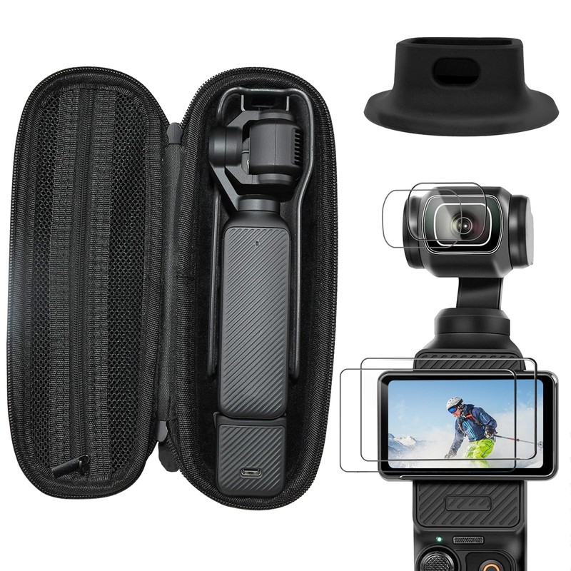 Carrying Case Compatible with DJI Osmo Pocket 3, Camera Case, Silicone Desktop Mount 1Pack, Tempered Glass Screen Protector 2Pack, Lens Protector Film 2Pack, Osmo Pocket 3 Accessories Kit, Black