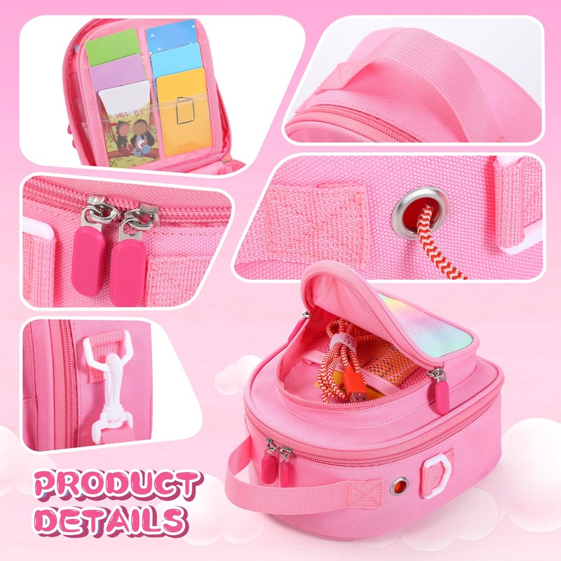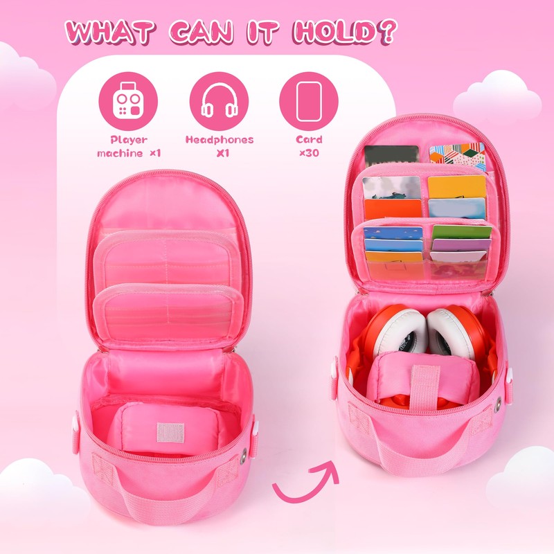 Carrying Case Compatible with Yoto Mini 2024 Edition Kids Audio Music Player & Headphone, Travel Storage Bag for Audiobook Cards Radio (Up to 30 Cards) with Adjustable Strap, Pink(Bag Only)