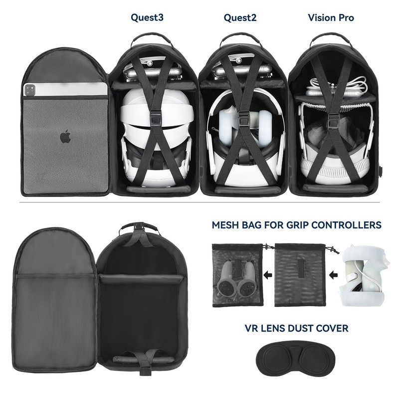 • 【Ample Space】: Our VR bag can accommodate a 12.9-inch Ipad, and has two pockets on the outside to hold all official parts, as well as power adapters, cables, mobile phones, power banks, etc.