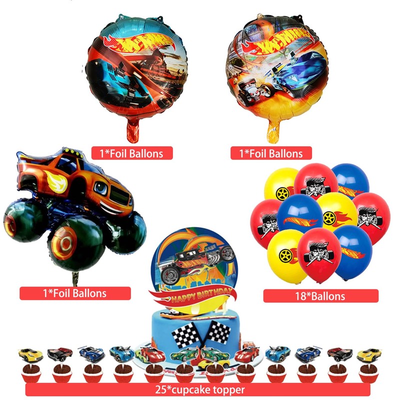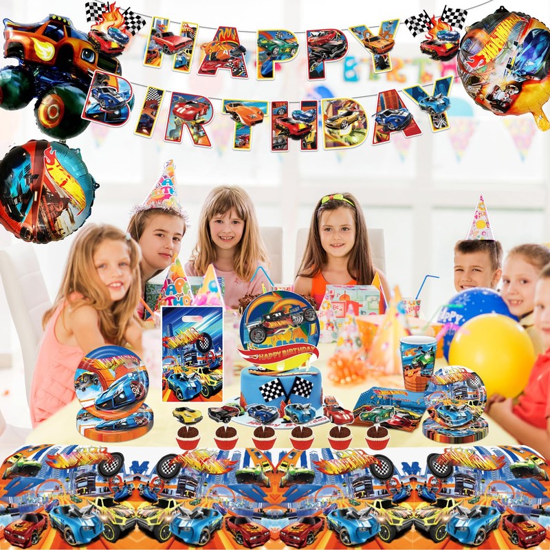 Cars Birthday Party Tableware, 108 Pieces Cars Birthday Decoration Set, Cars Party Decoration, Cars Balloons, Tablecloth, Paper Plates etc. for Boys and Girls Birthday Party