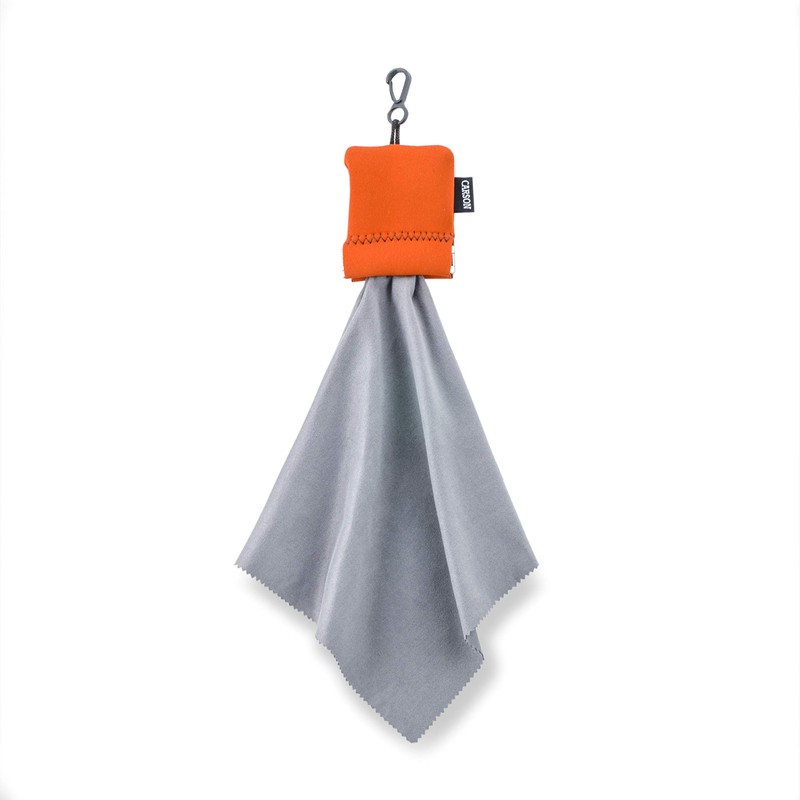 The Stuff-It Pro (larger version) from Carson is a 8.0'' X 8.0'' microfiber cleaning cloth that is housed inside of a protective neoprene pouch. It contains a metal spring frame system making it very easy to open the pouch with a simple squeeze. The Stuff-It Pro also has a carabineer clip attached by a drawstring so users can easily attach it to keychains, backpacks, belt loops and more. The Stuff-It Pro microfiber lens cleaning system is a safe, easy and effective way to clean all types of lenses, screens and glass surfaces. To use, simply squeeze the two metal springs together, then pull the cloth out of the protective pouch. After you're done using the cloth, simply use your fingers to stuff the cloth back into the pouch. The Stuff-It Pro will not scratch or damage surfaces in any way. It is a great cleaning device for smartphones, tablets, eyeglasses, cameras, optics and so much more.