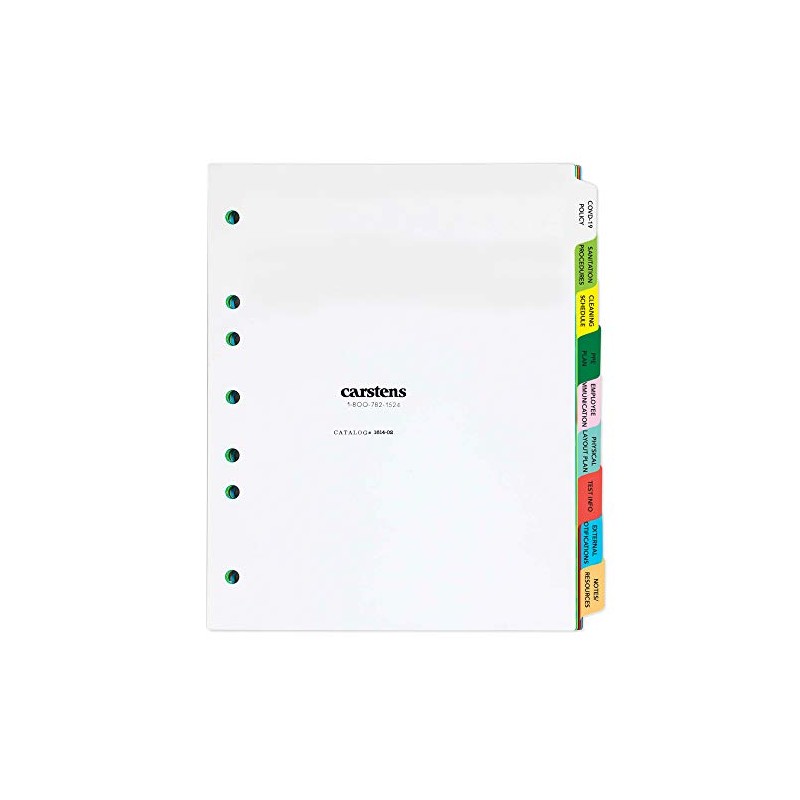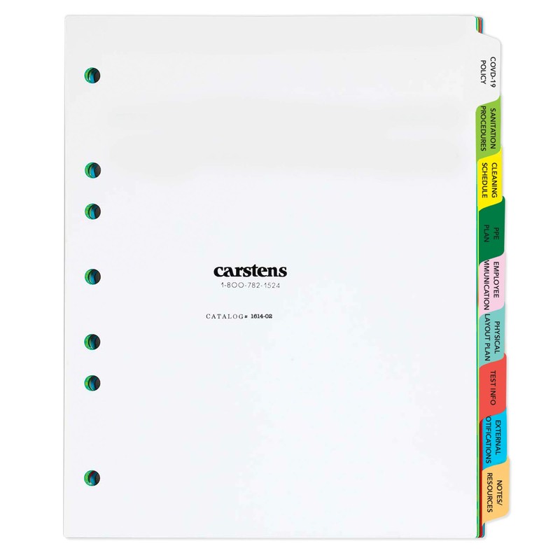 Carstens COVID-19 Policies and Procedures 3-Ring Binder with 9-Tab Plastic Divider Set – Side Opening