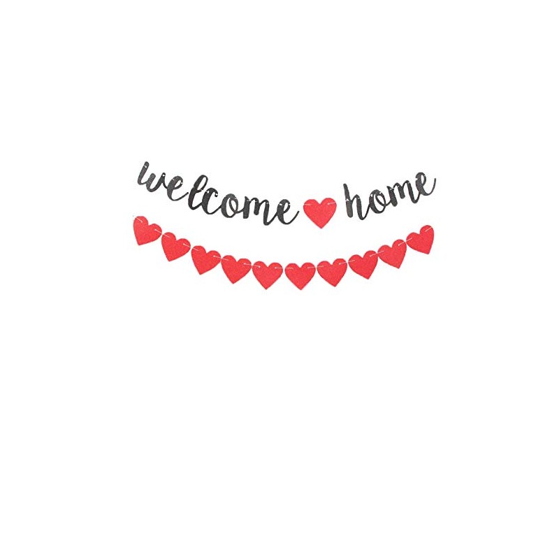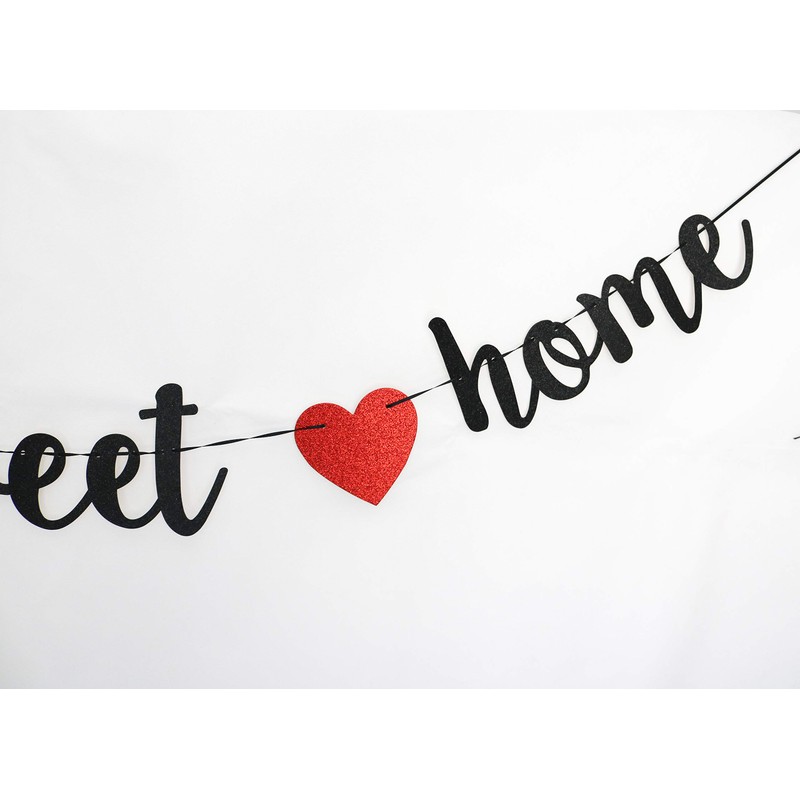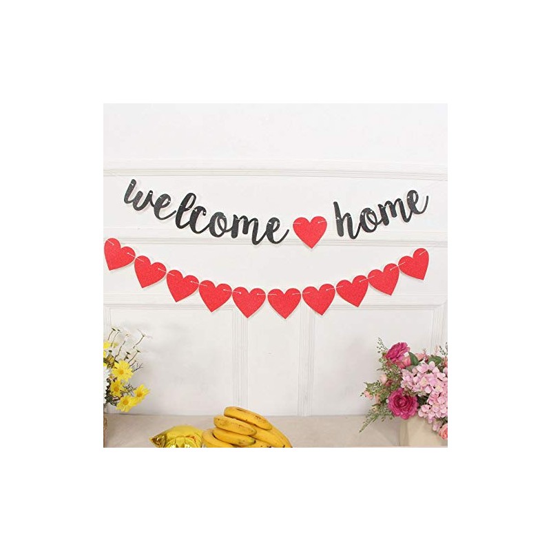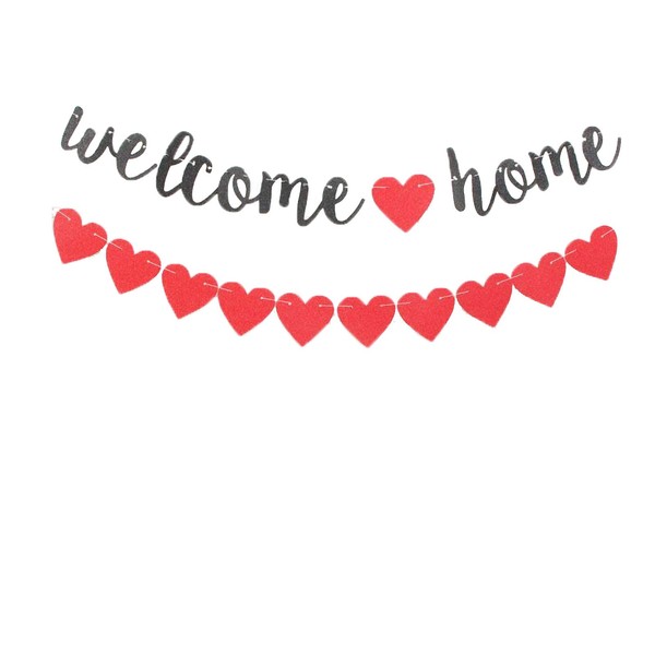Cartel de bienvenida a casa, cartel de fiesta en casa con un montón de decoraciones de corazones rojos, suministros para fiestas temáticas familiares (kit negro brillante rojo).