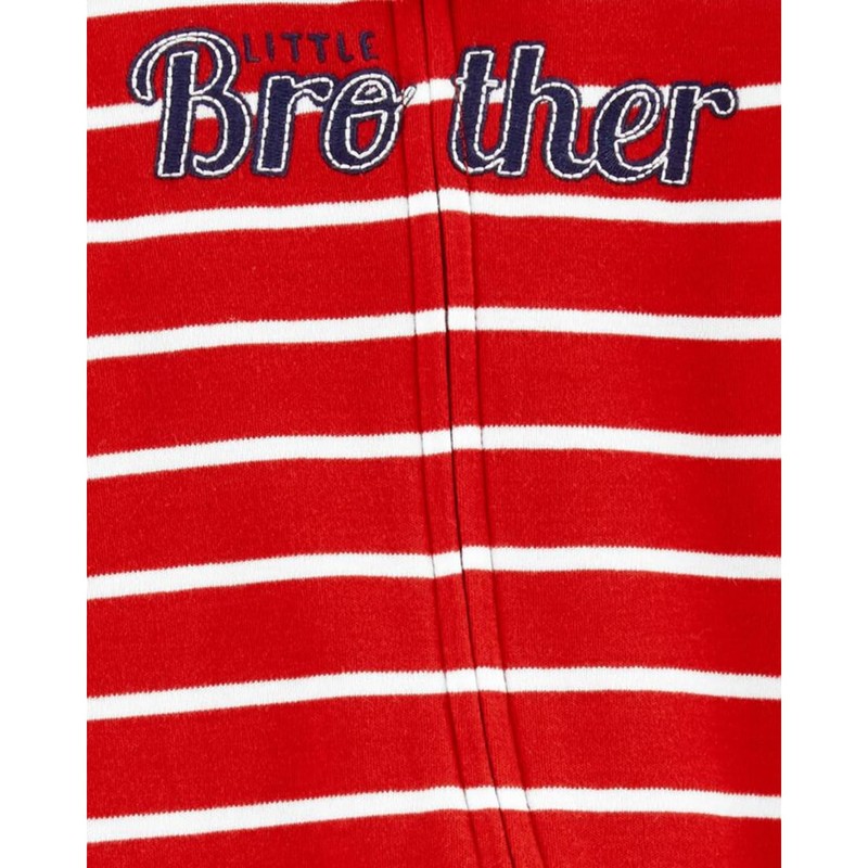 Carter's Baby Boys' Cotton Zip-up Sleep N Play (Red/Stripe Little Bro, 6 Months)