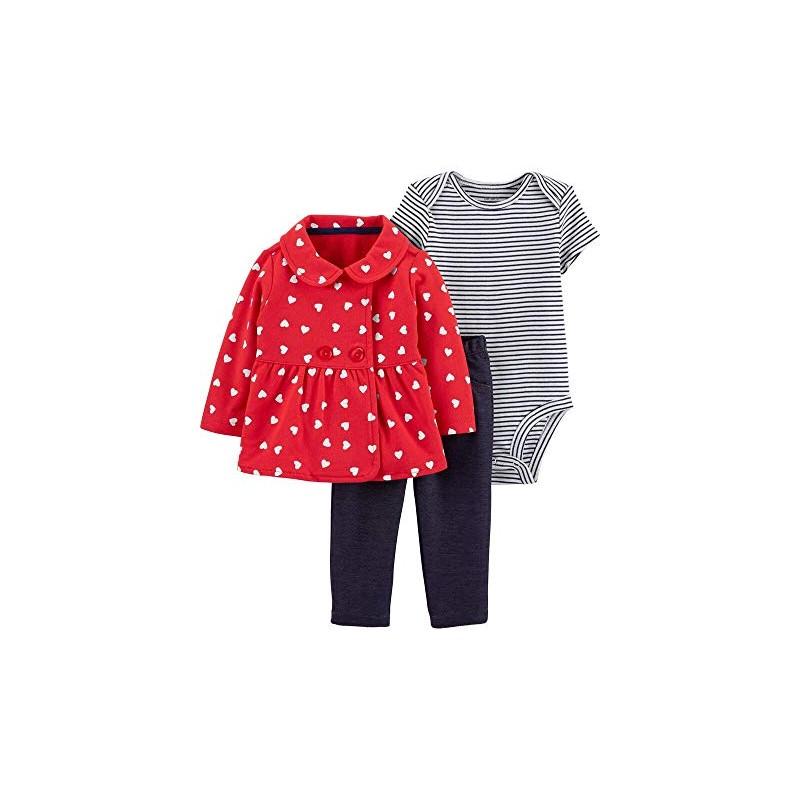 Carter's Baby Girls' 3 Pc Sets 127g177 (6 Months, Red Heart/Button)