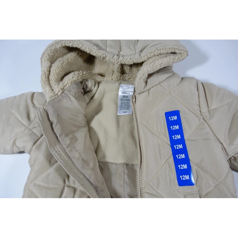 Carter's Carters Baby Pram Suit Snowsuit 12 Month Foldover Cuffs for Hand Feet Khaki NWT