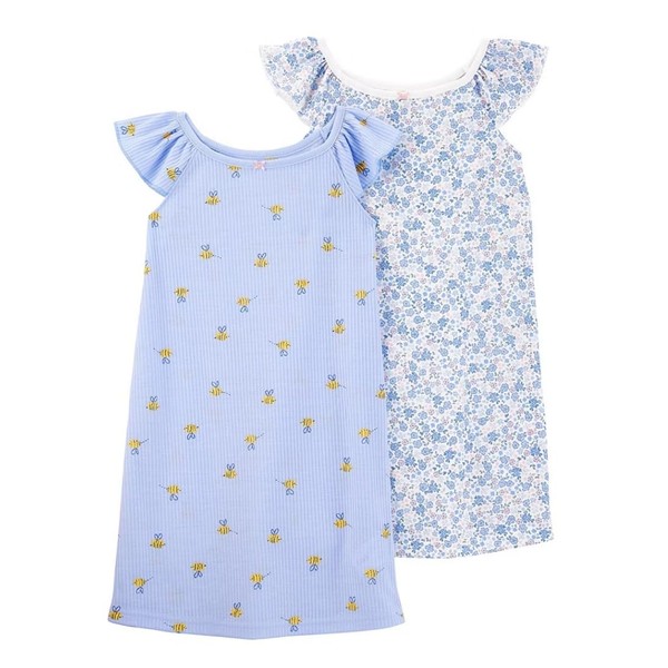 Carter's Girls' 2 Pk Gown Poly 373g082, Blue Floral/Bees, 2T