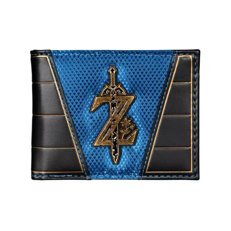 Cartera/Billetera de piel sintética Leyenda de Zelda, escudo metálico con motivos, azul