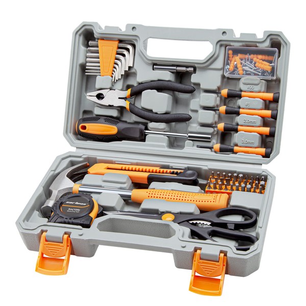 CARTMAN 126-Piece Home Tool Set Kit, Basic Household Hand Tools with Storage Case, Orange