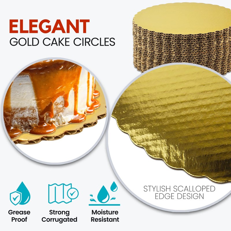 Cartón corrugado dorado para pastel | Cartón festoneado, base redonda, pizza, pasteles, postres y repostería, a prueba de grasa y resistente a la humedad