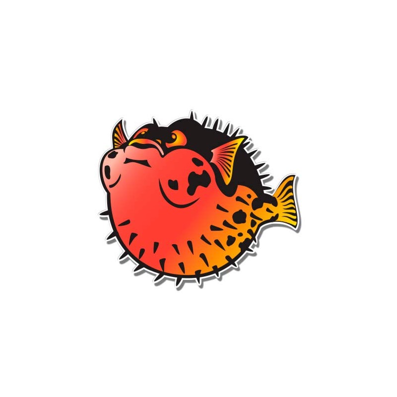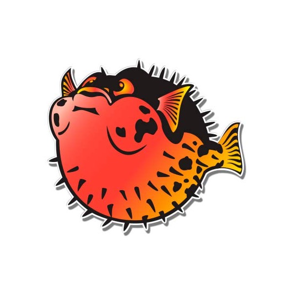 Cartoon Blowfish - 3" Vinyl Sticker - for Car Laptop I-Pad Phone Helmet Hard Hat - Waterproof Decal