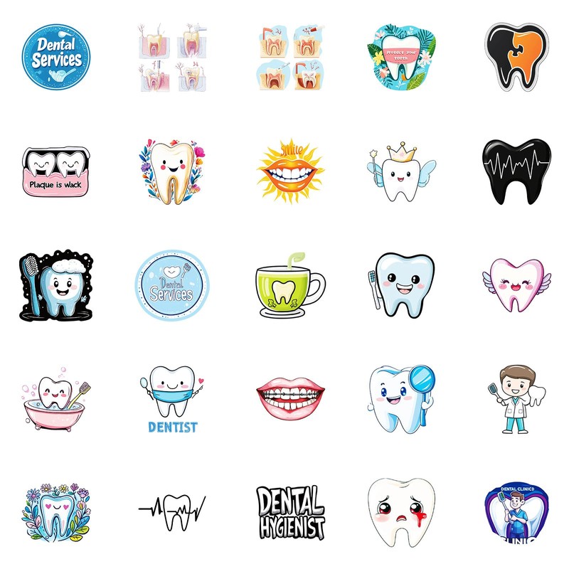 Cartoon Dental Stickers for Laptop(50 Pcs),Gift for Kids Teens Adults Girl,Funny Tooth Waterproof Stickers for Water Bottle,Vinyl Stickers for Scrapbook,Journal,Dairy,Skateboard