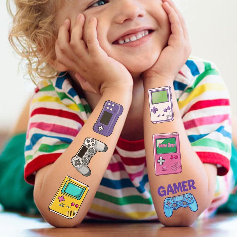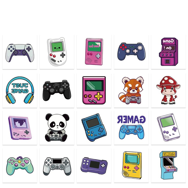 - Temporary Tattoos -- The cartoon stickers Temporary Tattoos package includes 20 Sheets of Cute Aesthetic Game Console Temporary Tattoos styles,the sticker pattern is the same as the picture