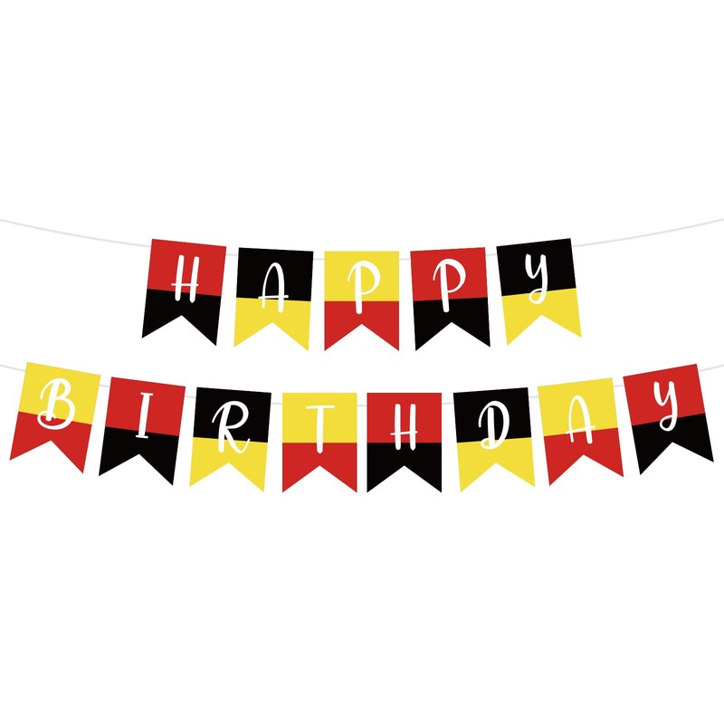 Cartoon Mouse Happy Birthday Banner, Pre-Strung Cartoon Mouse Style Bunting Birthday Party Decorations Black and Red Bunting for Boys Girls 1st 2nd 3rd Baby Shower Party Supplies
