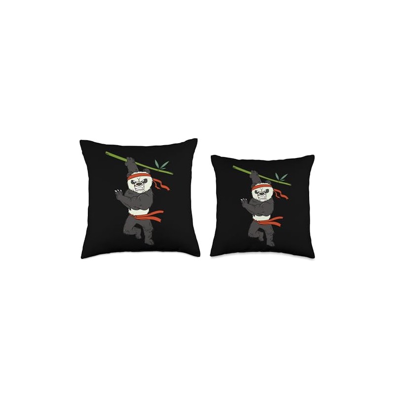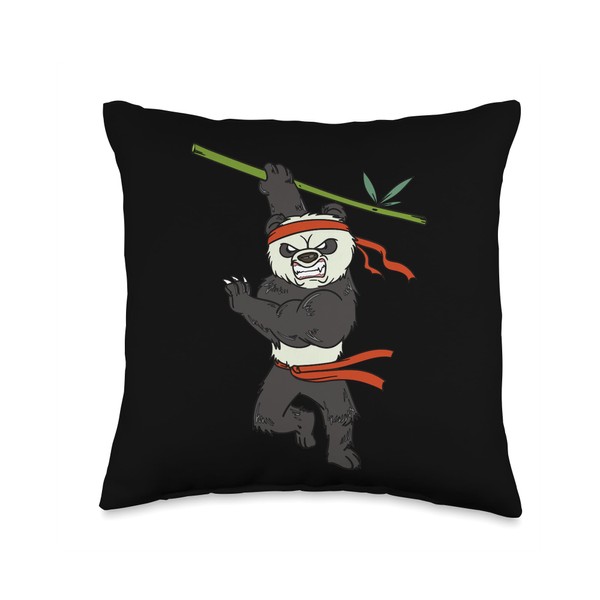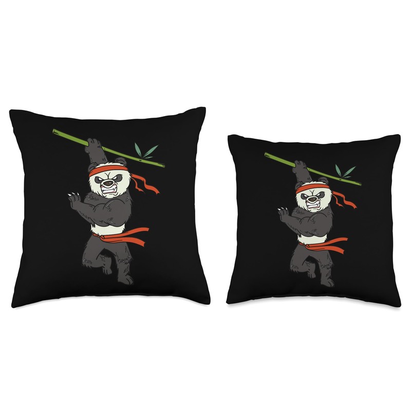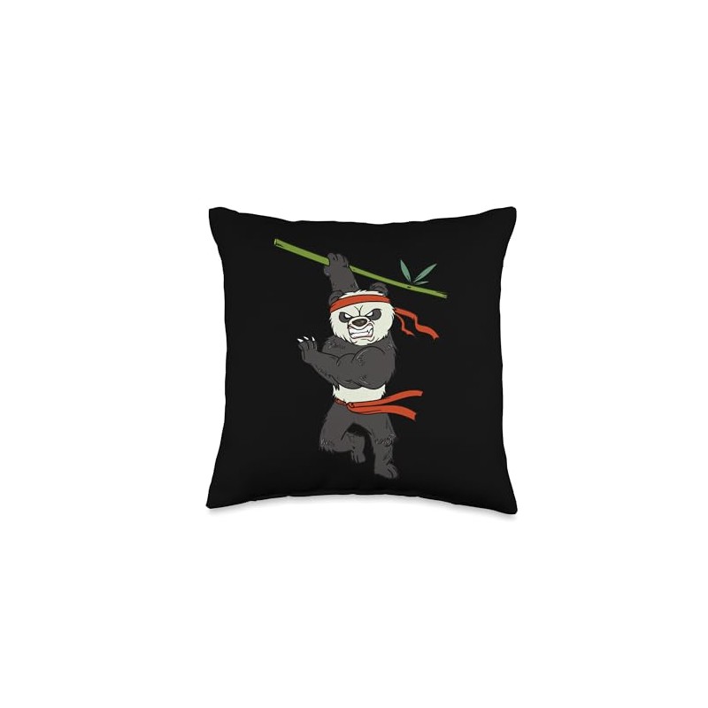 Cartoon Ninja Panda Playful Character For Kids Throw Pillow