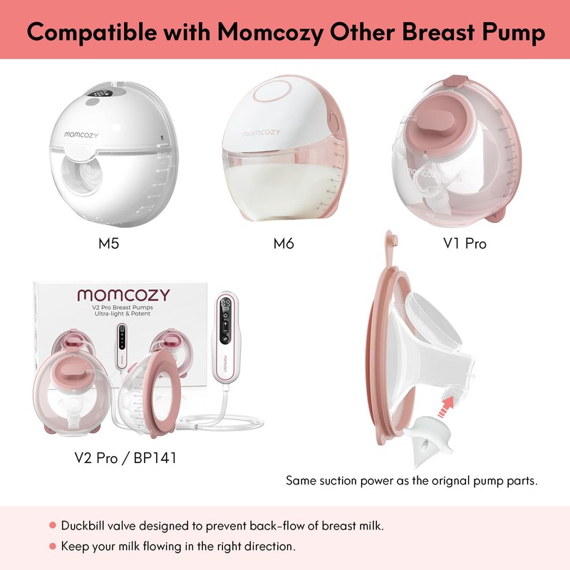 - 👩🍼【Content: 8 piece duckbill valves set】Compatible with Momcozy M5 / M6 / V1 Pro / V2 Pro / BP141 / Paruu P16 breast pumps. Duckbill valve designed to prevent back-flow of breast milk, keep your milk flowing in the right direction. Same suction power as the orignal pump parts.