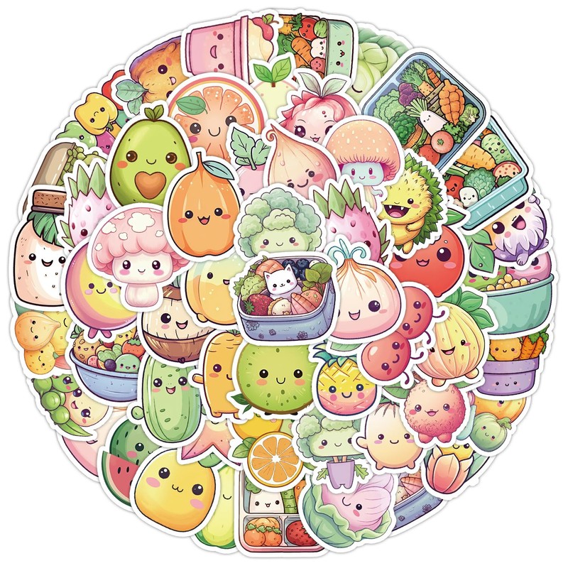 Cartoon Vegetable Stickers Pack of 50 Skateboard Graffiti Stickers Motorcycles Bicycle Snowboard Luggage Laptop Car Suitcase for Children and Teenagers Waterproof Vinyl Stickers