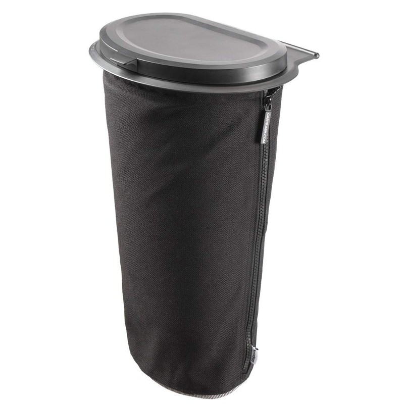 - Your durable bin for on the go. Flexible and durable with a plastic lid and a protective cover (cover bag) made from recycled PET bottles. The ideal waste solution for cars, offices or wall mounting with a capacity of 9 litres.