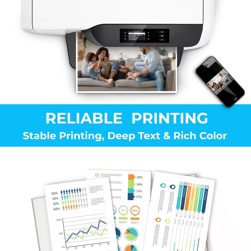 - Advanced ink with brilliant printing results, high reliability ink cartridges, does not clog the print head low printing costs.