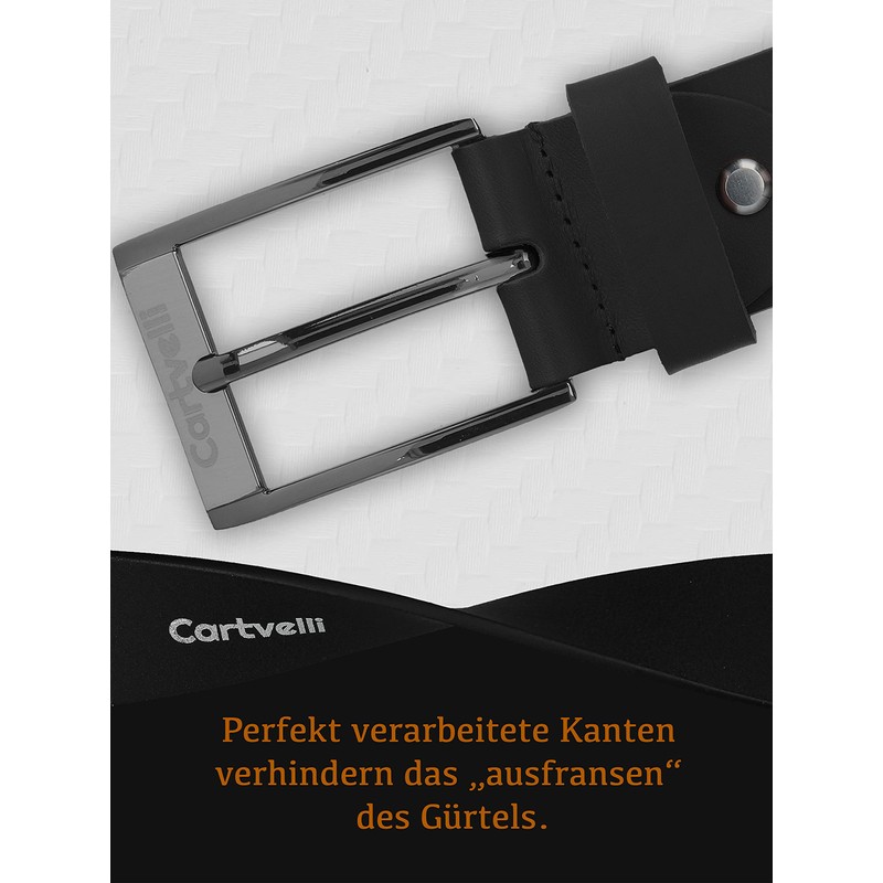 Cartvelli Business Leather Belt Men's 35 mm Made in Germany with Gift Box - Genuine Leather Belt for Suit, Jeans, Chino, caviar black