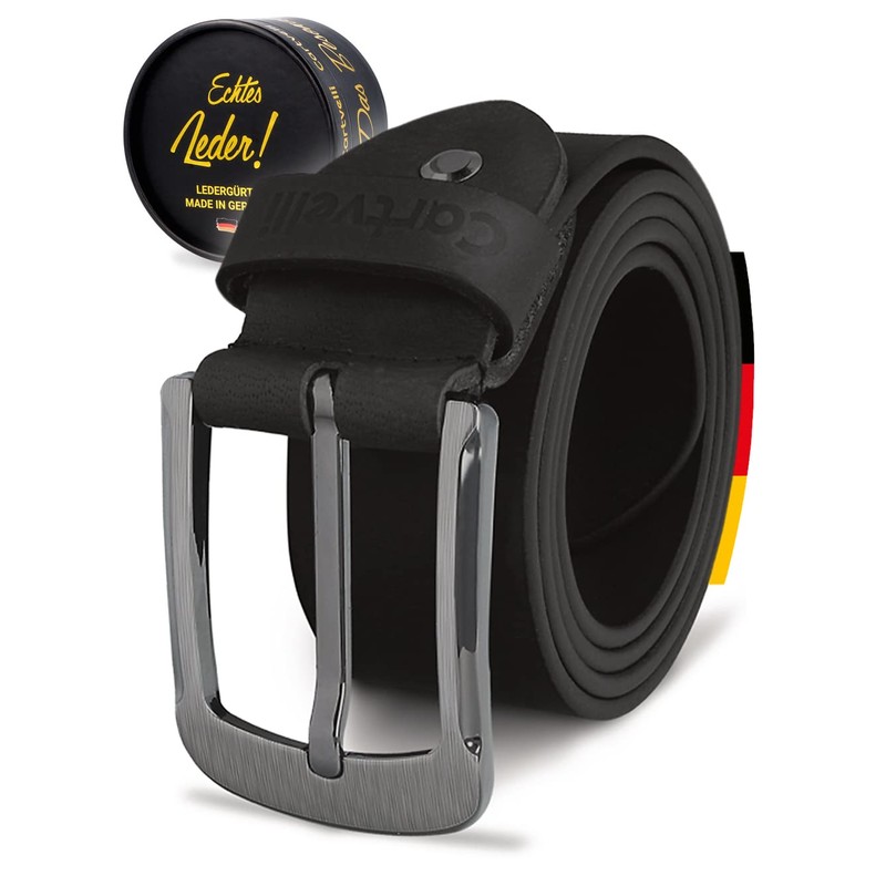 Cartvelli Men's Leather Belt Made in Germany with Gift Box – Genuine Leather Belt 38 mm for Suit, Jeans or Chinos, Gold Edition, black
