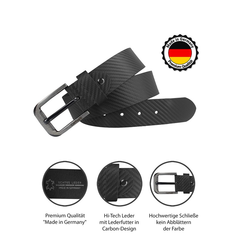 - ✅ LANGLEBIG: Das Hi-Tech Leder in Carbon Optik ist perfekt verarbeitet und steht daher für Qualität und Langlebigkeit. Der Lederguertel wird somit über viele Jahre Ihr treuer Begleiter.