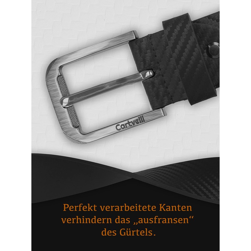 - Durable: the hi-tech leather in carbon look is perfectly processed and therefore stands for quality and durability. The leather belt will therefore be your faithful companion for many years.