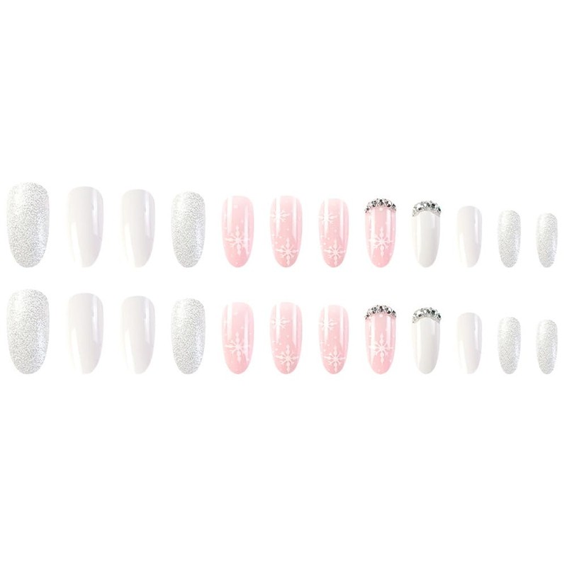 Carufin 24 Pcs Christmas False Nails Sparkling Sequins Snowflake Fake Nails Long Round head Nail Press On False Nails (B)