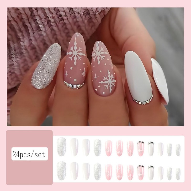 - Christmas Snowflake nail art finished patch full cover nails,The style nail design style is creative and fashionable,suitable for fashion lovers.