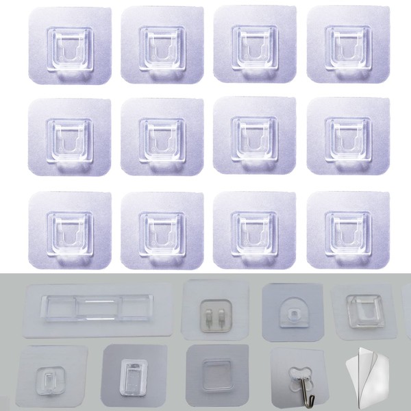 CARURLIFF 12 PCS Wall Mounted Replacement Sticky pads for Kitchen Bathroom Shower Caddy Organizer Rack Holder Nail Free Adhesive Hooks (Concave Shape)