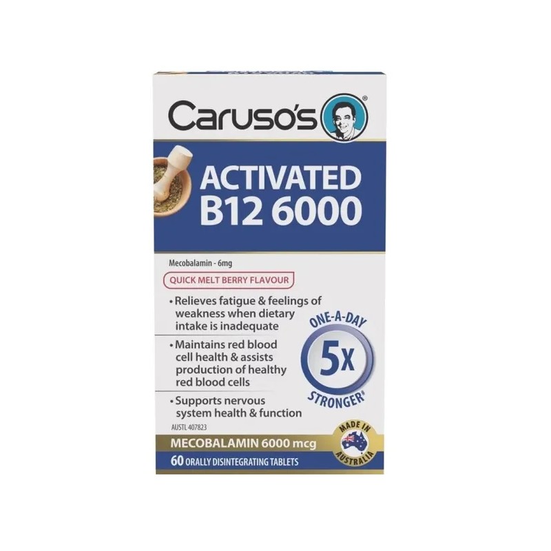 Caruso’s Activated B12 6000 is a high strength one-a-day tablet containing 6mg of Mecobalamin, the bioavailable and metabolically active form of Vitamin B12.