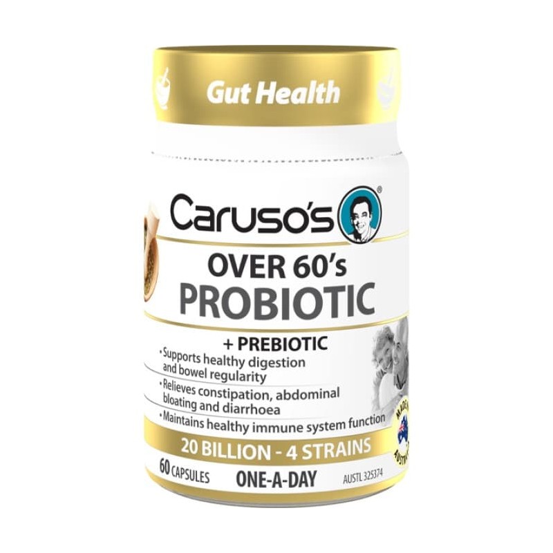 Caruso's Over 60's Probiotic provides a unique blend of probiotics making it ideal for any adult over 60 who requires support to restore beneficial gut flora, digestive health and bowel regularity. It also helps to maintain the health of the immune system.