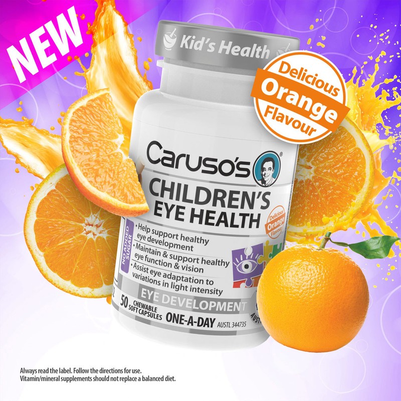 Caruso's Children's Eye Health is a high-strength fish oil formula enriched with additional nutrients, including Vitamin A and Lutemax 2020®, conveniently delivered in a delicious natural orange chewable capsule. It's an ideal supplement for growing children.