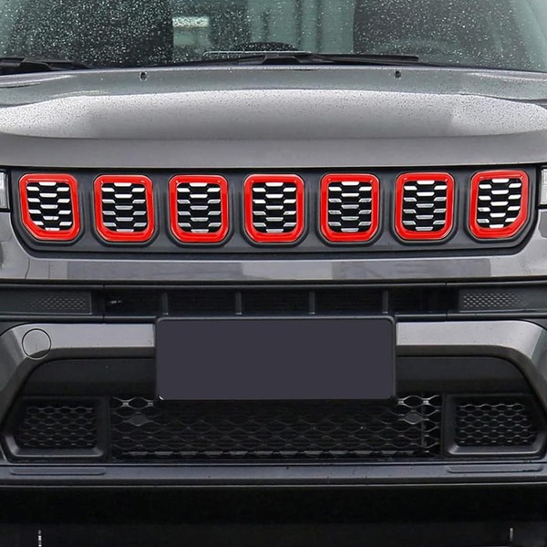 Carwiner Front Grille Grill Inserts Cover for 2022-2024 Jeep Compass Accessories Frame Trim Kit (Red)