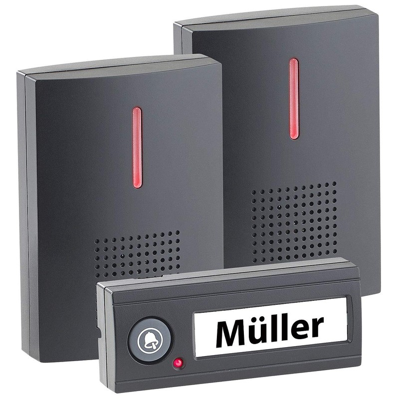 - Up to 100 m wireless range. Adjustable volume in 5 levels. 36 different melodies. With light and sound signal. Can be extended as desired.