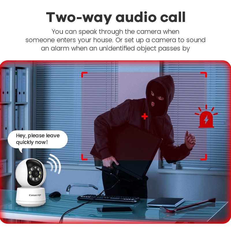 CASACOP Smart Security Camera, 1080p Home Security Camera, Pan & Tilt 2.4Ghz Indoor IP Camera, with Person, Vehicle, Animal Detection, Phone App 2-Way Audio, Works with Alexa and Google Assistant
