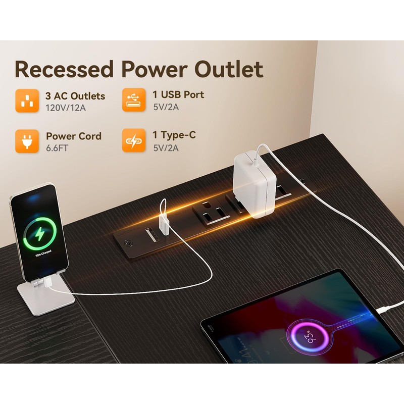 - 【Built-in Power Outlet】The L shaped computer desk includes 3 AC outlets, 1 USB port and 1 Type C port, letting you charge laptops, phones, or gaming gear without extra adapters. Ideal for your work desk or study desk, it reduces cable clutter and keeps devices powered during long sessions