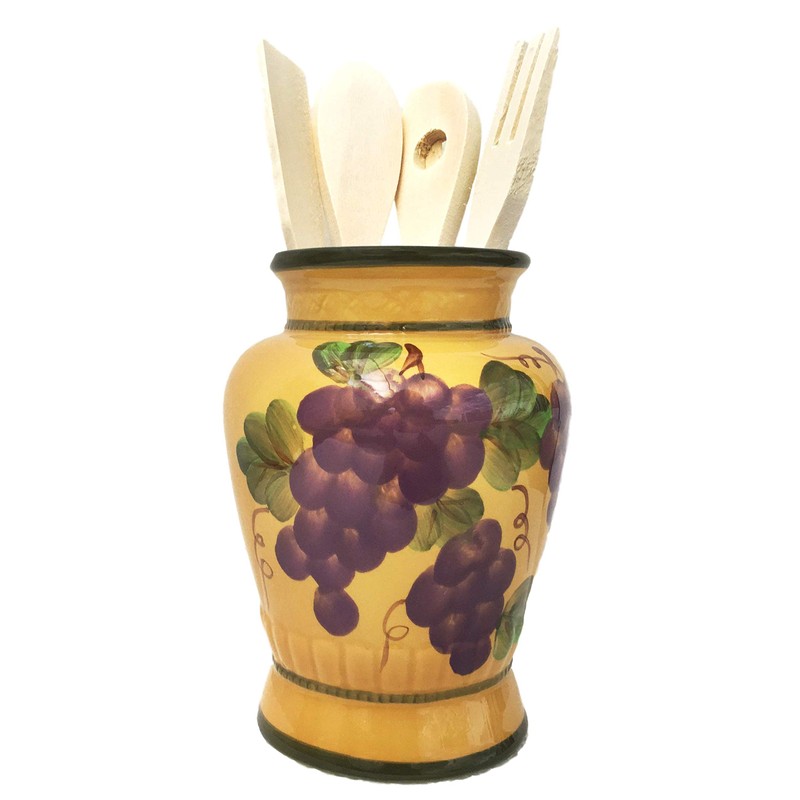 CASAVERO Kitchen Utensil Holder with Tools Grape Tuscany Decor